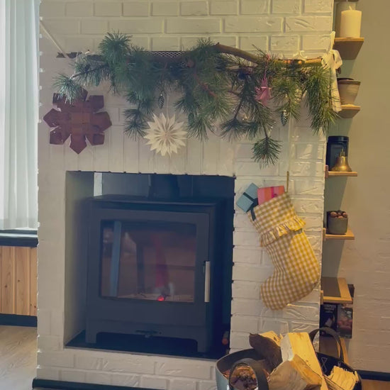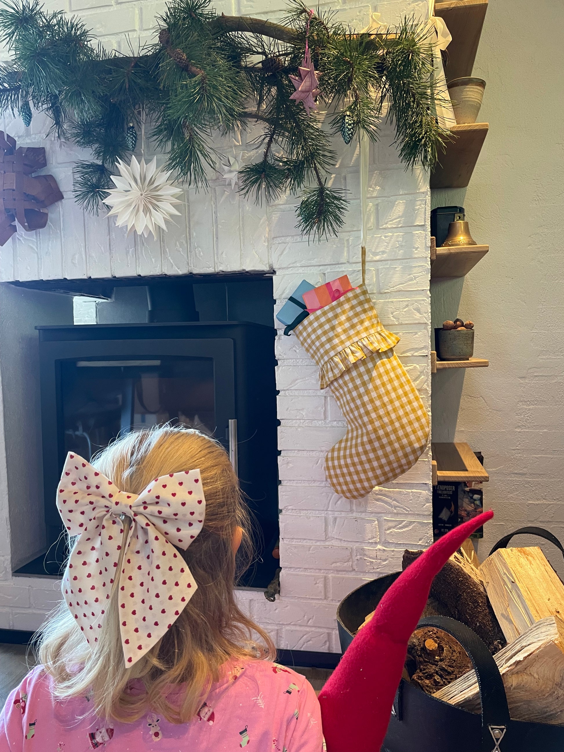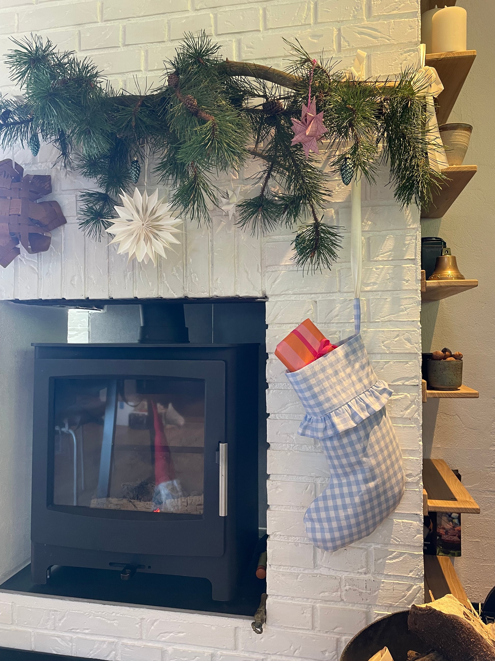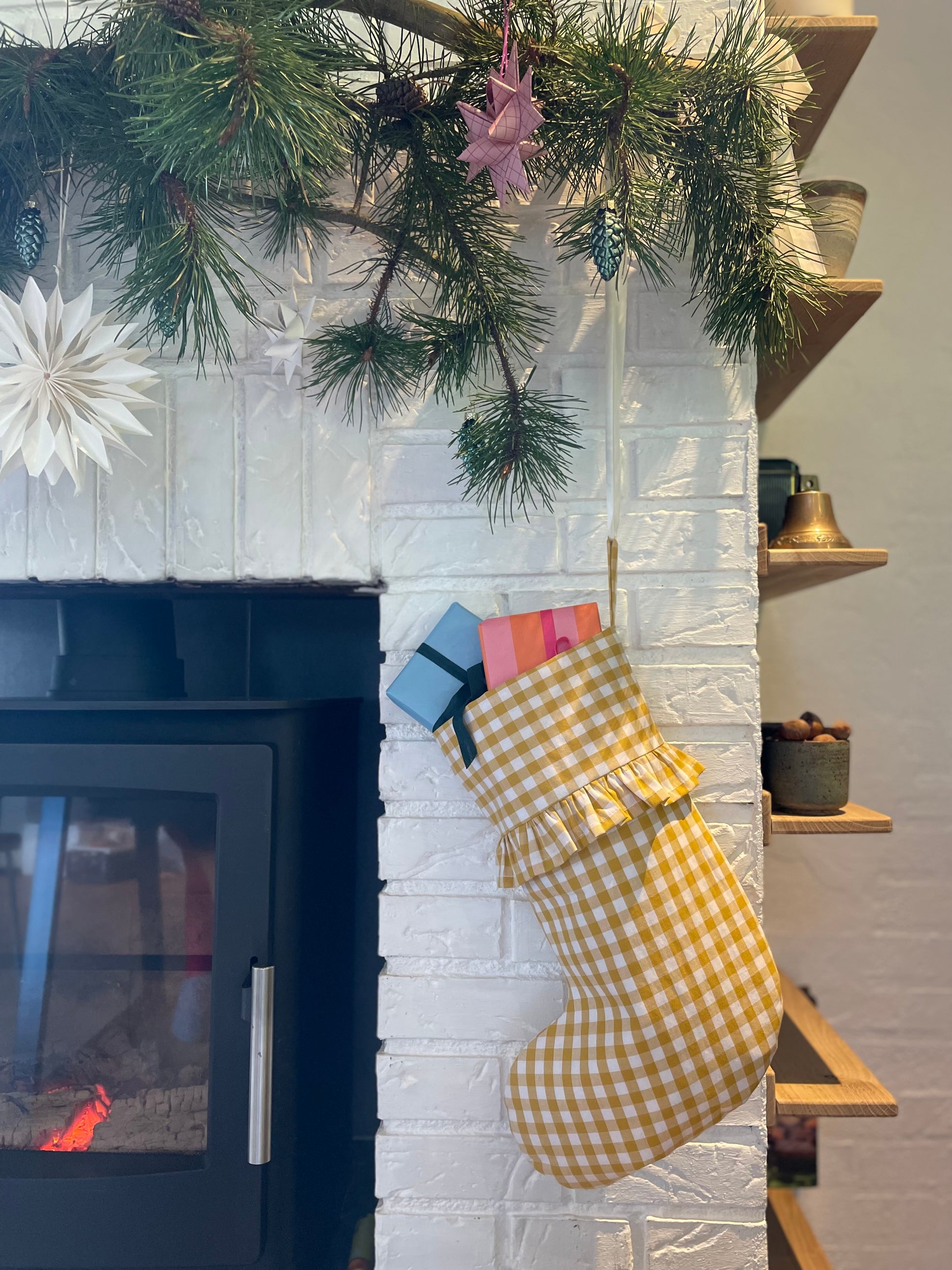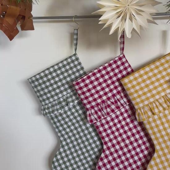 Julesok i ternet stof. Måske du kender en lille eller stor som vil blive glad for sin helt egen julesok? Hver julesok er håndsyet og findes kun i begrænset antal. 100% bomuld. Det er muligt at tilkøbe et lille navneskilt i træ til sokken.
